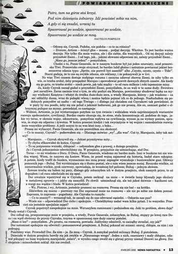 2. Рассказ американской писательницы Эстер Фриснер/Esther M. Friеsner, который называется в оригинале “In the Realm of Dragons” (1998, “Asimov’s Science Fiction”, Feb.; 2002, авт. сб. “Death and the Librarian and Other Stories”; 2004, ант. “The Mammoth Book of Sorcerer’s Tales”) перевела на польский язык под названием “W krainie smoków/В стране драконов” ДАНУТА ГУРСКАЯ/Danuta Górska (стр. 8-16; 25-28). Иллюстрации КУБЫ ЩЕНСНОГО/Kuba Szczęsny.