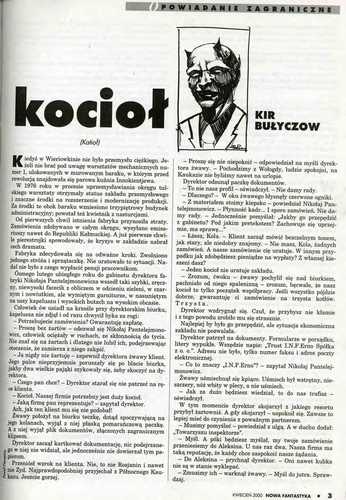 1. Рассказ российского писателя Кира Булычева, который называется в оригинале «Котел» (1992, ант. “Сатанинская сила”; 1999, авт. сб. “Лишний близнец”; 2006, авт. сб. “Монументы Марса”) перевели на польский язык под названием “Kocioł/Котел” ЕВА и ЭУГЕНЮШ ДЕМБСКИЕ/Ewa i EuGeniusz Dębscy (стр. 3-7). (Кстати, обратите внимание на написание в оригинале имени пана Эугенюша – мне всегда нравилось его чувство юмора. W.) Иллюстрации ПАВЛА ПЕНЕНЗНЕГО/Paweł Pienęźny.
