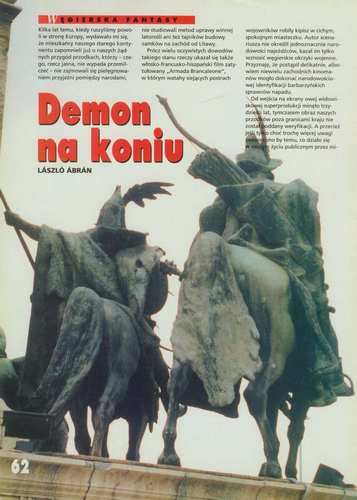 6. Далее Ласло Абран в подрубрике «Венгерская фэнтези» в статье «Demon na koniu/Демон-всадник» вспоминает о том, как он показывал Мацею Паровскому памятник семи вождям, возвышающийся на площади Героев в Будапеште, а Мацей Паровский вносит в его рассказ некоторые коррективы (стр. 62-63).