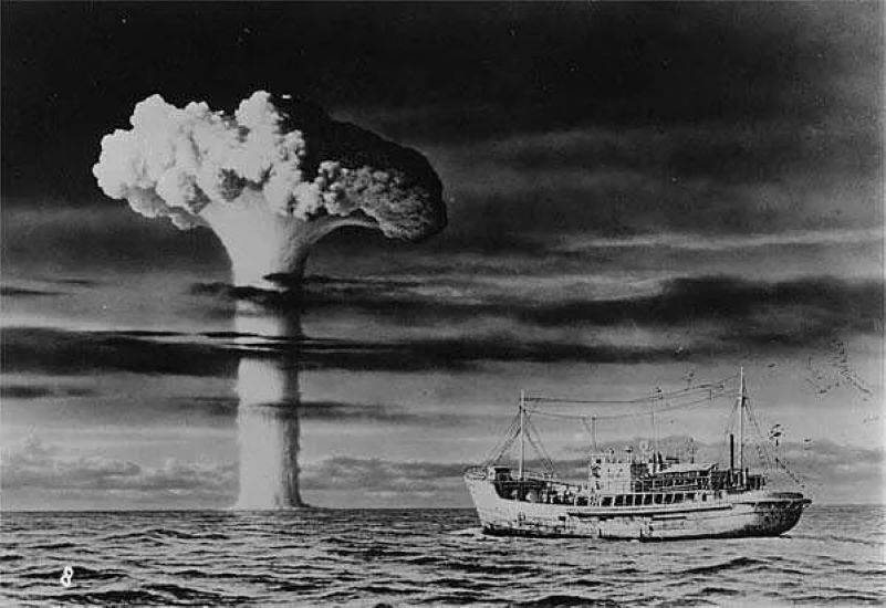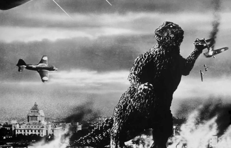 Действие первого кинематографического «Годзиллы» происходит в болезненной послевоенной реальности. Все начинается с загадочной катастрофы рыбацкого корабля, есть сообщения о последующих нападениях. Все как в романе «Двадцать тысяч лье под водой»Жюля Верна, с той разницей, что вдохновение черпалось не из литературы, но реальных событий: происходящее с катером в фильме было смоделировано по судьбе корабля «Дайго Фукурю Мару» («Счастливый дракон»), который 1 марта 1954 года находился под воздействием радиоактивных осадков – таков был результат американских ядерных испытаний на атолле Бикини.