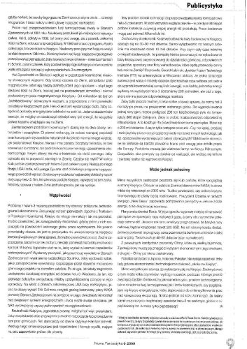 1. Открывает журнал рубрика «Галактический гонец» — короткие сообщения на разные темы, так или иначе касающиеся фантастики (стр. 2–-3). Оглашены номинации на получение премии имени Ежи Жулавского за 2008 год. Утвержден также список номинаций на премию имени Дэвида Геммелла (среди номинантов Анджей Сапковский). Названы лауреаты премии Британской ассоциации научных фантастов и премии имени Филипа Дика. Исполняется 70 лет величайшему американскому издательству комиксов “Marvel”. Анонсировано оглашение списка номинантов на премию имени Януша Зайделя. Состоится выставка работ польского художника МАРЕКА ТОМАСИКА, издавна сотрудничающего с нашим журналом. После длительной болезни 19 апреля 2009 года умер великий британский писатель Джеймс Грэм Баллард…
