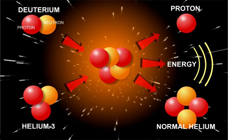 Работы по термоядерному синтезу ведутся в США с 1951 года. Ученые искали самое безопасное топливо. Гелий-3, открытый в 1939 году, принимался во внимание, но из-за его крайне малого количества на Земле был признан бесперспективным. В 1969 году астронавты программы «Аполлон» обнаружили значительные его залежи на Луне. Ученые, работающие над синтезом, пренебрегали этим фактом вплоть до 1984 года.