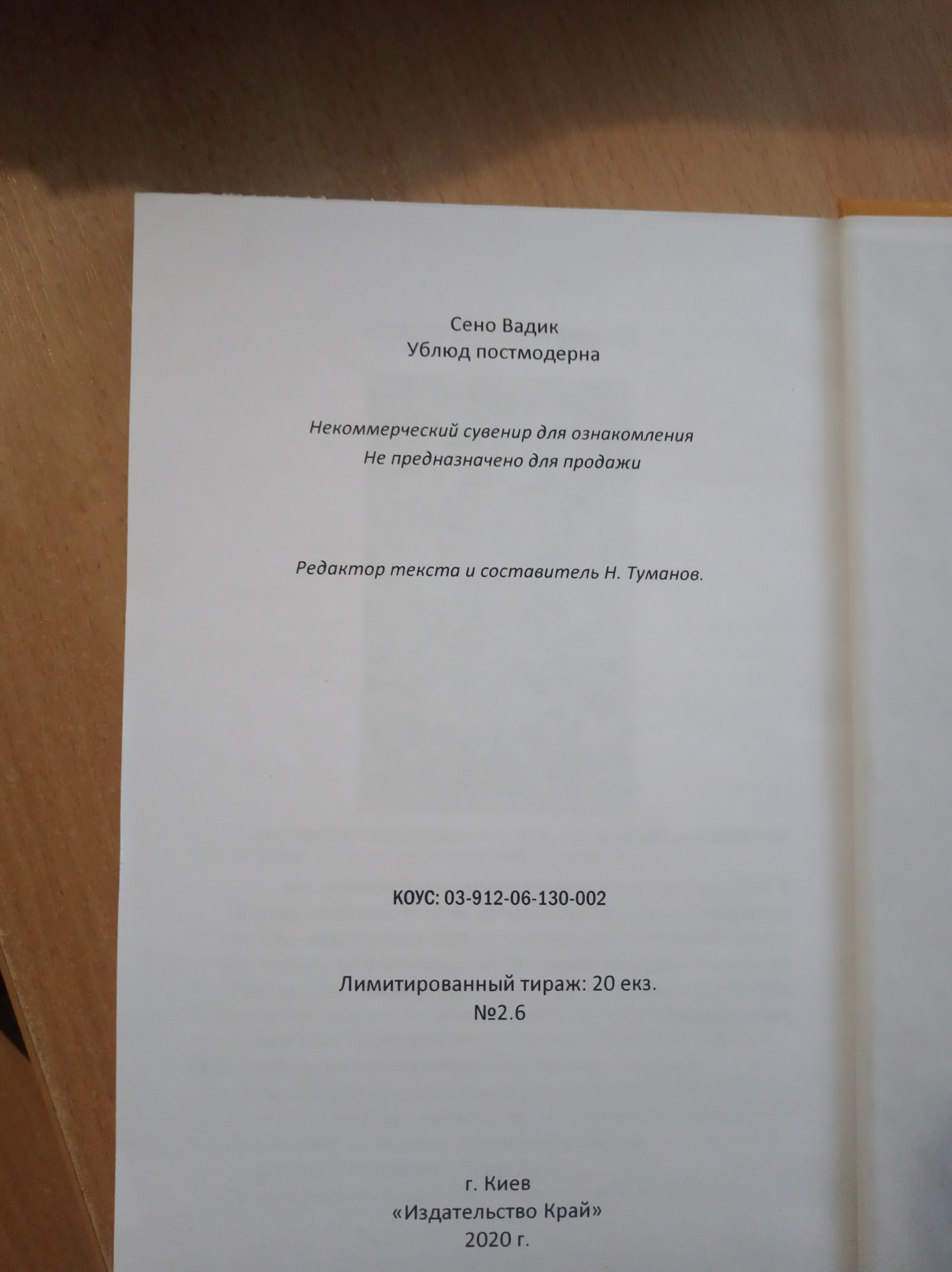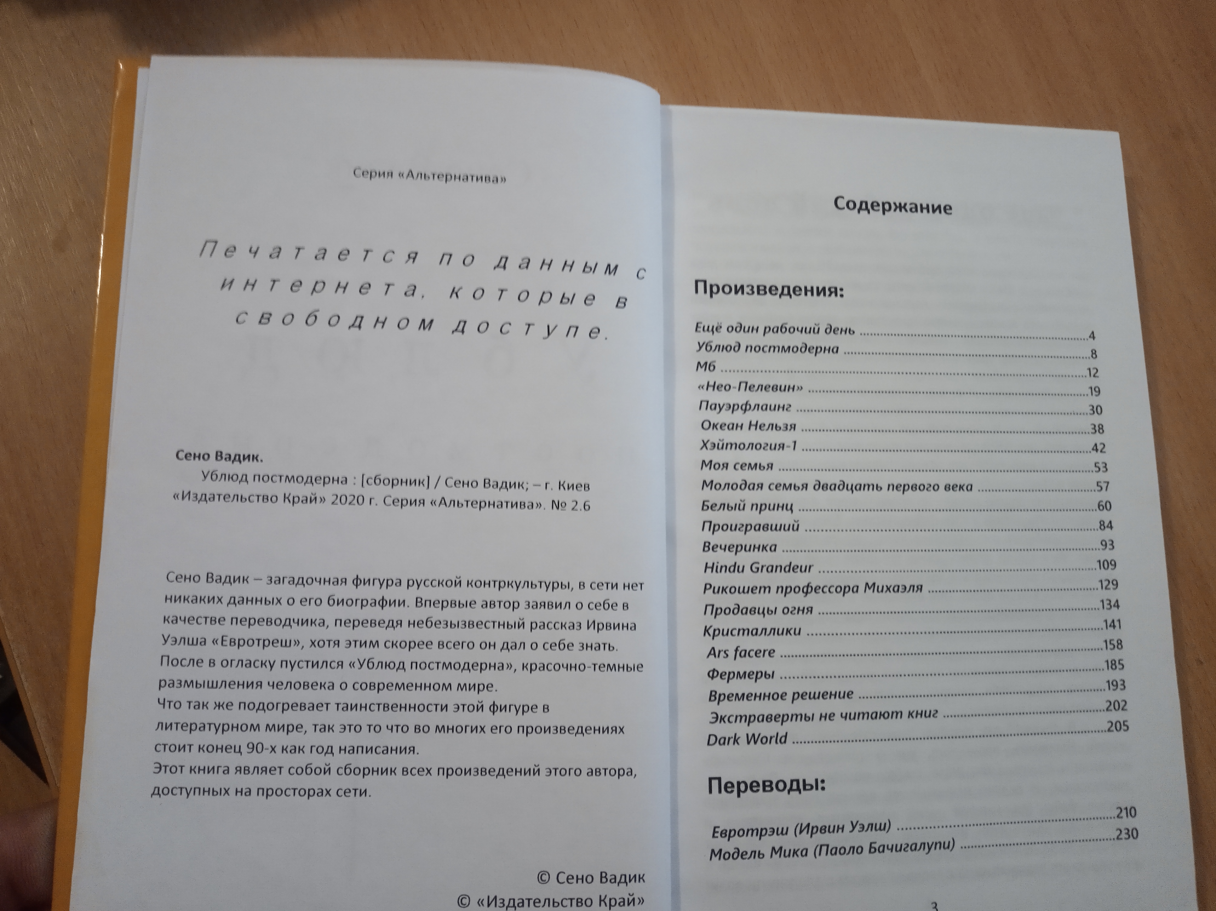 Сено Вадик, сборник «Ублюд постмодерна» — Киев: "Издательство Край", Самиздат, 2020 г. 248 стр.