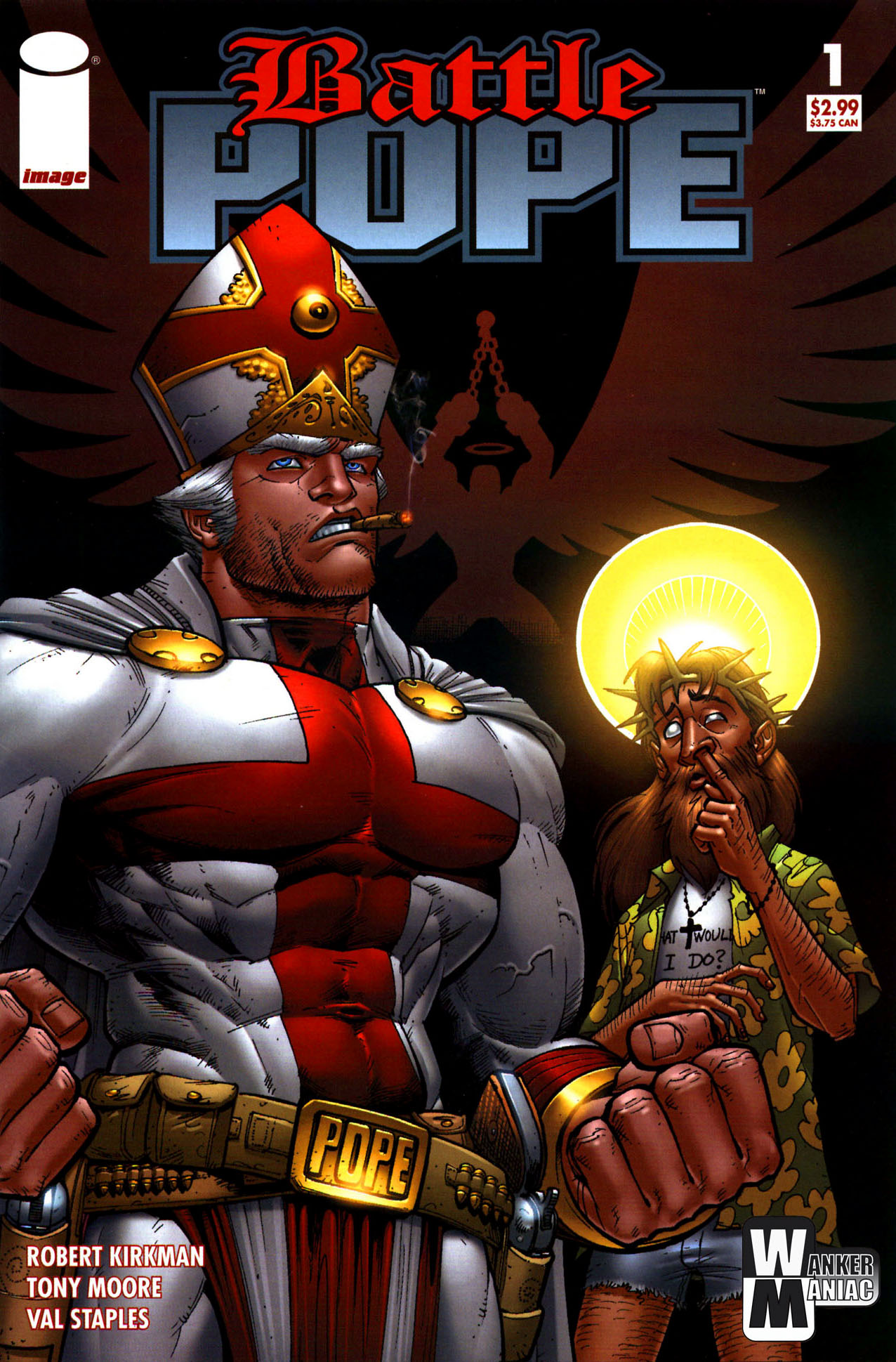 Вот такая фабула. Особо религиозные люди наверно после этого уже начали мысленно складывать авторам дровишки для костра, но на самом деле ничего особо криминального там нет. Это конечно веселый бестактный и нецензурный стеб надо всеми аспектами католической религии (с нашими, не считая основ, реалиями соотносится мало, поэтому, даже если вы не очень щепетильны в этих вопросах, то можете спокойно читать). При этом стеб хоть и дико похабный, но абсолютно беззлобный, а местами даже затрагивает весьма интересные темы. Например, в Рождественском выпуске Иисус жалуется, что все забыли о его Дне Рождения и ждут подарков лишь для себя. (Хорошо, что у нас разделяют общественный и религиозные праздники.) Так же авторы не обошли стороной и многие другие аспекты обычной жизни. Ну, и конечно же сильно на орехи досталось всем супергеройсим клише вместе взятым. Правда, юмор здесь в любом случае весьма специфический, выше пояса поднимается не часто, зато уж если затронули какую-то тему то не в бровь, а в глаз. К сожалению, это относится в основном к первым четырем выпускам и еще к некоторым после, ибо в подобном стебе надо все же уметь держать четкий баланс на грани фола, не забывая при этом и про сюжет, а он местами тут просто отсутствует.