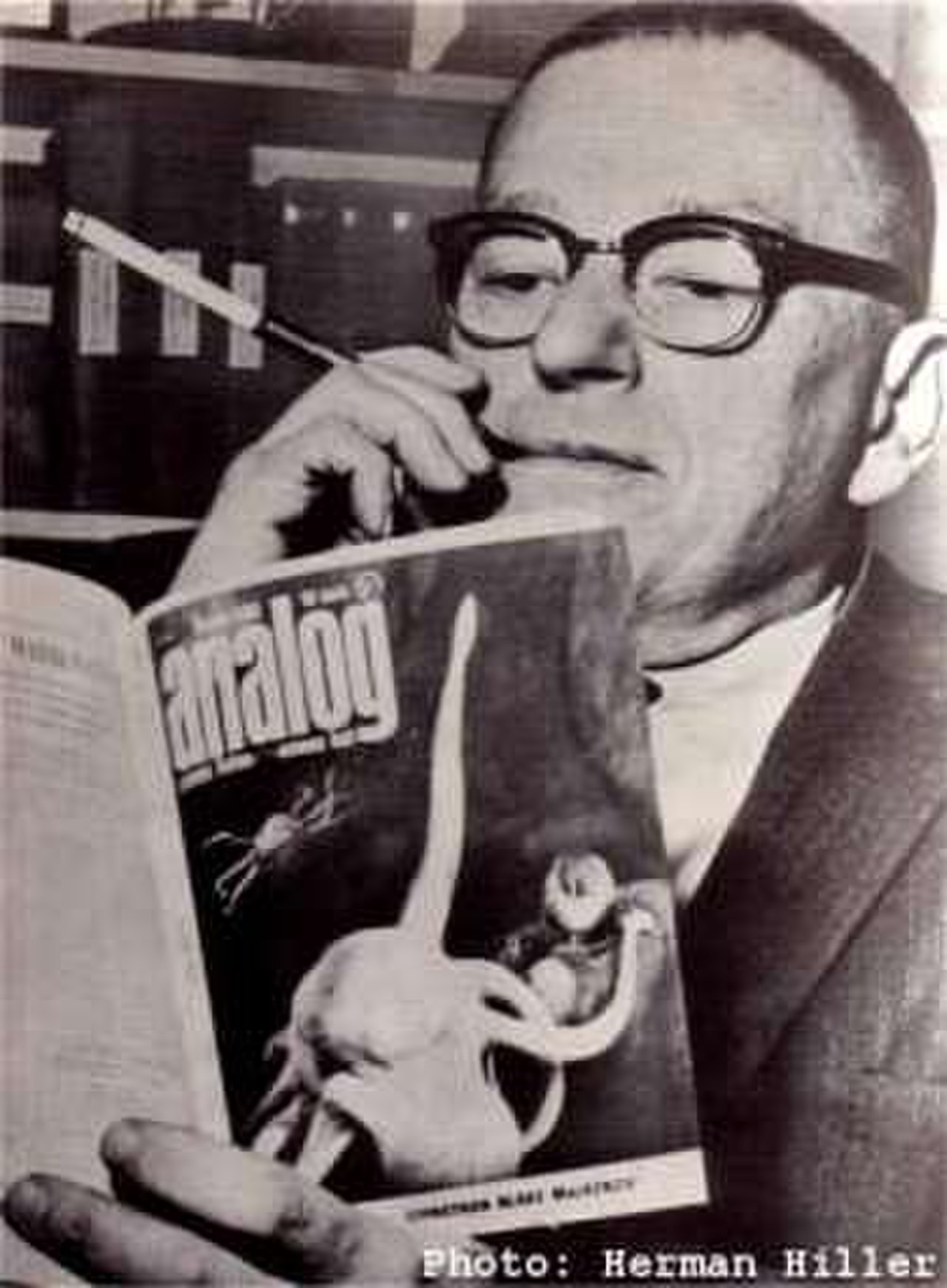 Но всё это, вместе взятое, только заложило фундамент. Человек, который использовал фундамент и построил на нём здание современной научной фантастики, придал ему форму, которую мы сейчас принимаем как должное, был высоким, широкоплечим, светловолосым, коротко стриженным, носящим очки, властным, подавляющим, размахивающим сигаретой в мундштуке, энергичным, самоуверенным, разговорчивым, человеком по имени Джон Вуд Кэмпбелл-младший.