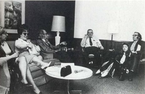На ЛунаКоне-71, с лева на право — неопознанная женщина, Джуди-Линн дель Рей, Лестер Дель Рей, Джон В. Кэмпбелл, Джанет Джеппсон и Айзек