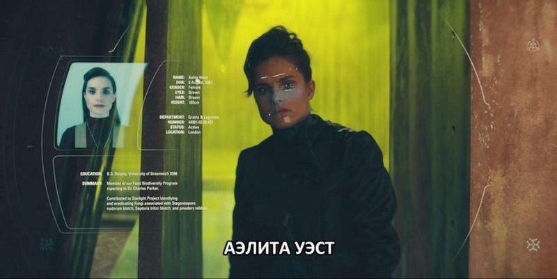 Ну а первая серия — ну, что по ее поводу можно сказать? Ну да, наворочено там всё так, как Гибсон это любит — сплошные американские горки в виртуальной реальности (но уже не в киберпространстве, как это было в Муравейнике, который переводился и издавался когда-то при моём активном участии, а потом переиздавался в дополнительной перередактуре Саши Гузмана, — а просто в компьютерной игре, практически неотличимой от реальности). Девушка в роли мужчины (неужели это такой хитрый стёб над братьесёстрами Вачовски?), много пиф-паф, много бац-бац и много ой-ё-ёй, взломы и грабежи, таблетки и пиво, хирургические инструменты для извлечения из тела каких-то важных его элементов, дроны и автомобили-невидимки. Всё, как нынешние зрители любят. Сразу же скачал и вторую серию (тоже в переводе и озвучке HDRezka Studio) — теперь её тоже придётся смотреть, но — уже завтра. Очень понравилось имя одной из таинственных героинь этого кино — вот оно на субтитре в скриншоте кадра из сериала.