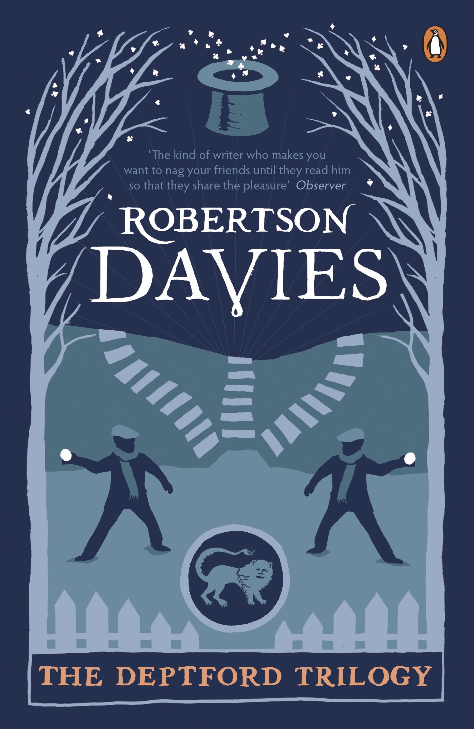 В течение пары лет Дэвис то и дело представлял себе заснеженную деревенскую улочку, на которой мальчишки играют в снежки. Один запущенный со злостью снежок попадает не в соперника, а в проходящую мимо женщину – поскользнувшись, та неудачно упала, и это падение навсегда изменило жизнь участников происшествия. Так начинается «Дептфордская трилогия» (от названия вымышленного городка Дептфорд), и уже в первой сцене нам так или иначе представлены герои трех романов: об одном расскажут напрямую, другие будут фигурировать в роли родителей в будущих историях. Как и в случае с другими книгами Дэвиса, пересказ сюжетов не имеет особого смысла: в них будут присутствовать богачи и ученые, фокусники и политики – но все они станут частью дэвисовской вселенной, второстепенные детали которой ничуть не менее интересны, чем центральная линия.