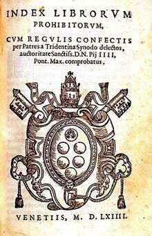 Ниже на фото: титульный лист "Справочника запрещённых книг" выпуска 1564 года, включавшего в себя около двухсот изданий.