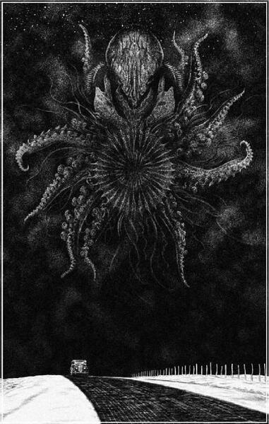 Изображение справа: художник М.Т. Лиддон, иллюстрация к рассказу "Извне" Г.Ф. Лавкрафта.