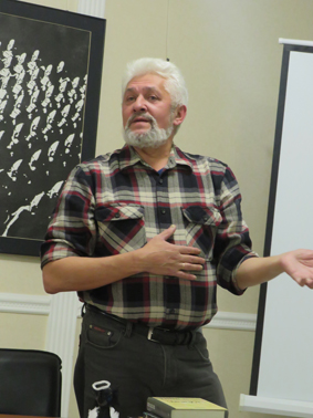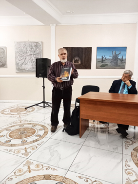 И вот настало время перейти к основной теме заседания – творческому вечеру председателя секции фантастики Тимура Максютова в связи с десятилетием творческой деятельности, которую он отсчитывает с момента издания первой авторской книги. Максютов энергично, весьма художественно и с немалым юмором живописал свое детство и юность, службу в армии и непростую жизнь на гражданке, потом перешел к рассказу о творчестве. К нашему великому сожалению, он боялся не уложиться в отведенное время и оставил за бортом своего выступления 5/6 подготовленной им истории. Затем с места поднялась дочь его покойного друга актриса Екатерина Селиванова, которая с большим воодушевлением прочитала два несомненно талантливых стихотворения Тимура Максютова.