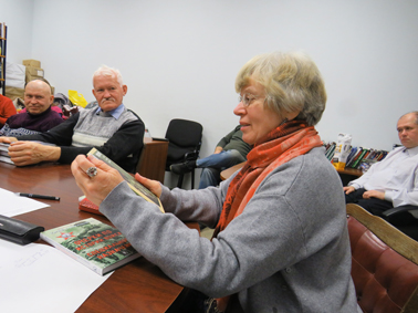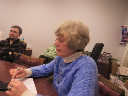Заседание началось со вступительного слова моего соруководителя Елены Ворон. Она говорила о специфике прямой речи. Особо подчеркнула необходимость умелой стилизации. Важный технический момент: фразы в прямой речи не могут быть слишком длинными – персонажам должно хватать дыхания. Речевые ошибки в репликах могут иметь место, только если это специально задумал автор. Также необходимо учитывать специфику мужского и женского коллектива. В диалогах женщин должно быть больше эмоций, уменьшительно-ласкательных слов, более тонких описаний цвета и так далее.