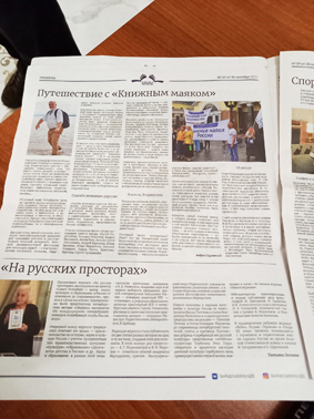 А также Буровский похвастался новой статьей «Путешествие с «Книжным маяком», вышедшей в газете «Книжная лавка писателей» №89 от 30 сентября 2023 г. В статье он рассказал об августовском «фестивале для читающих людей» — «книжном поезде», который проехал почти через всю огромную страну — от Москвы до Владивостока, и о встречах известных писателей с читающей публикой.