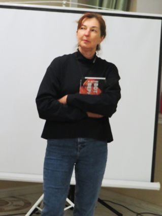 Свою новую работу представила Марианна Алферова — рассказала о вступительной статье и подробнейших комментариях (на 98 стр.) к уникальному переизданию книги А. и Б. Стругацких «Понедельник начинается в субботу» (М.: АСТ, СПб.: Астрель-СПб, 2023. Серия «Шедевры мировой литературы») (https://fantlab.ru/edition378662). Это был воистину огромный труд, завершившийся блестящим результатом.