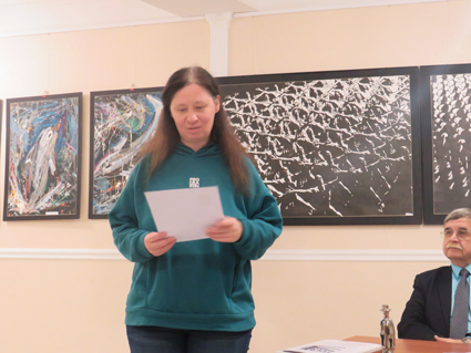 И наконец начался «парад» лауреатов, который по традиции происходит один раз в году – на январском заседании наших братских секций. Первой с места поднялась недавно принятая в Союз писателей Санкт-Петербурга староста Литературной студии имени Андрея Балабухи Татьяна Берцева. На ее счету в прошлом году было немало славных достижений: 1) медаль имени Льва Николаевича Толстого Международной академии русской словесности «За воспитание, просвещение и наставничество»; 2) лауреатский диплом премии "Дверь в лето-2023" за научно-популярную книгу «Лучший парк Лесного» (СПб.: Северо-Запад, 2023) (https://fantlab.ru/work1797128); 3) благодарственное письмо Библиотеки имени Д.С.Лихачева; 4) благодарность Комитета по науке и высшей школе администрации Санкт-Петербурга. Т.Берцева сказала, что мечтала получить премию «Дверь в лето» со своего первого появления на Студии. А кто именно представил ее к медали, она даже понятия не имеет.