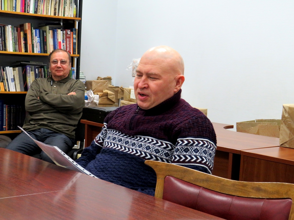 Вадим Кузнецов познакомил студийцев с юмористическим рассказом "Белинский", посвященным телевизионному шоу, которое было организовано по принципу книжной дуэли, центральной фигурой которого оказался "сверхмощный" компьютер о двух дурных головах.