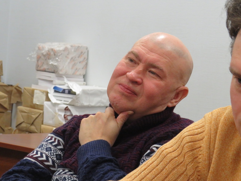 Традиционная "пятиминутка хвастовства" на сей раз оказалась очень короткой. Затем Леонид Смирнов напомнил студийцам, что 8 января этого года мы потеряли своего товарища — талантливого писателя Светлану Тулину. Она обладала целым букетом талантов, неиссякаемой творческой энергией, занималась множеством самых разных проектов в области литературы, издательской деятельности, археологии, цирка, кино и изобразительного искусства. В память о Свете соруководитель Студии Елена Ворон зачитала два ее рассказа (из числа последних), весьма типичных для творчества С.Тулиной.