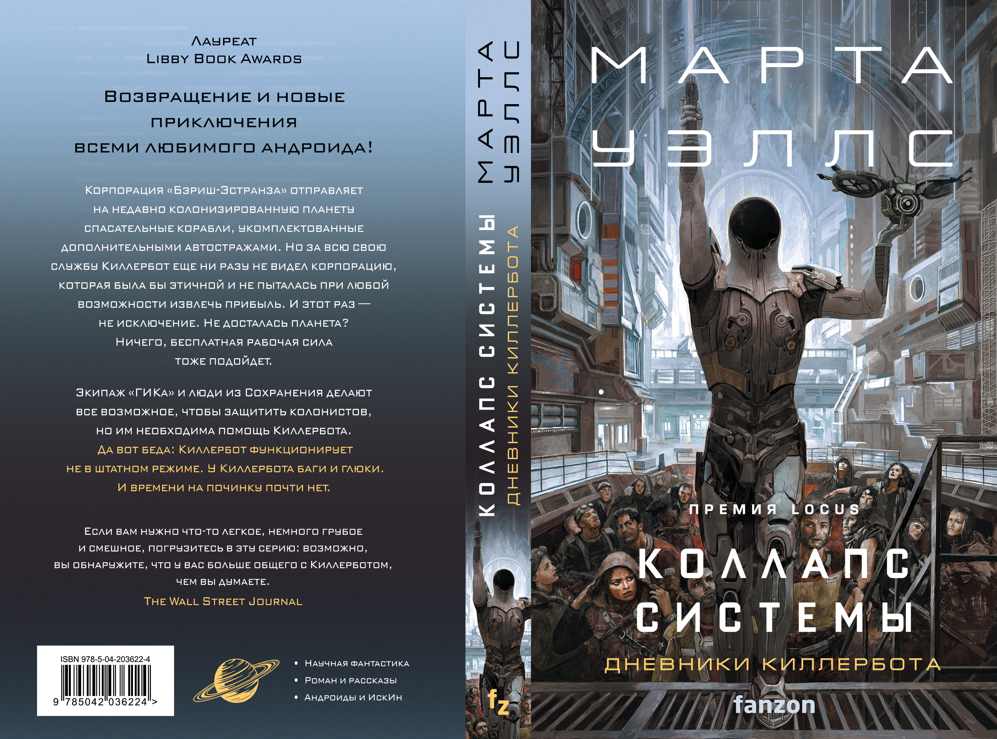 В сентябре в издательстве Fanzon выйдет продолжение «Дневников Киллербота» Марты Уэллс — омнибус «Коллапс системы». В него войдут роман и три дополнительных эксклюзивных рассказа о полюбившемся всем андроиде, который любит смотреть сериалы и не терпит людскую глупость. Лауреат премии «Локус» и Libby Book Awards.