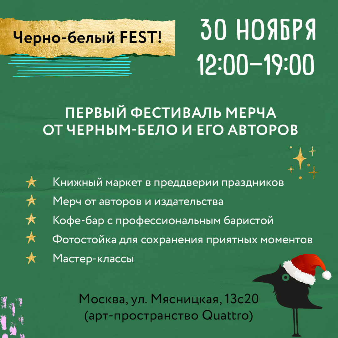 В субботу, 30 ноября, на территории арт-пространства Quattro пройдет фестиваль издательства «Черным-бело», где соберутся вместе авторы и партнеры издательства, а также сотрудничающие с ними иллюстраторы.