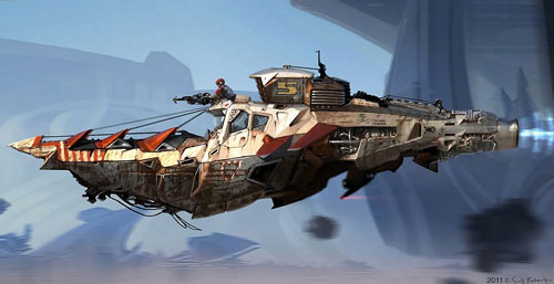 Авiацiя тоже не стоит на месте. От тяжелыхъ цеппелиновъ она постепенно движется в сторону уменьшенiя конструкцiй. На выставке былъ представленъ первый экспериментальный паролетъ от компании "Рэтвилгъ". Споры об уместности использованiя подобныхъ машинъ заняли несколько часовъ и закончились дракой между профессором Аронофски — конструкторомъ паролета и британским полковникомъ Стэплдеемъ — начальником первого ее императорского Величества полка цеппелиновъ дальней разведки.