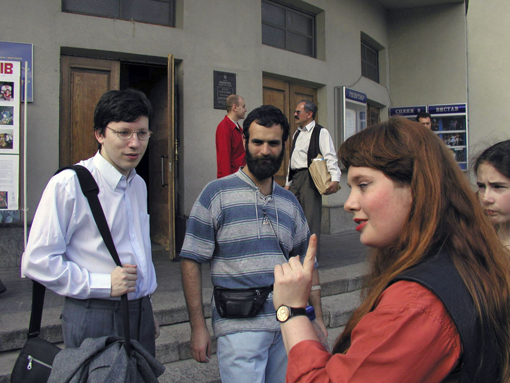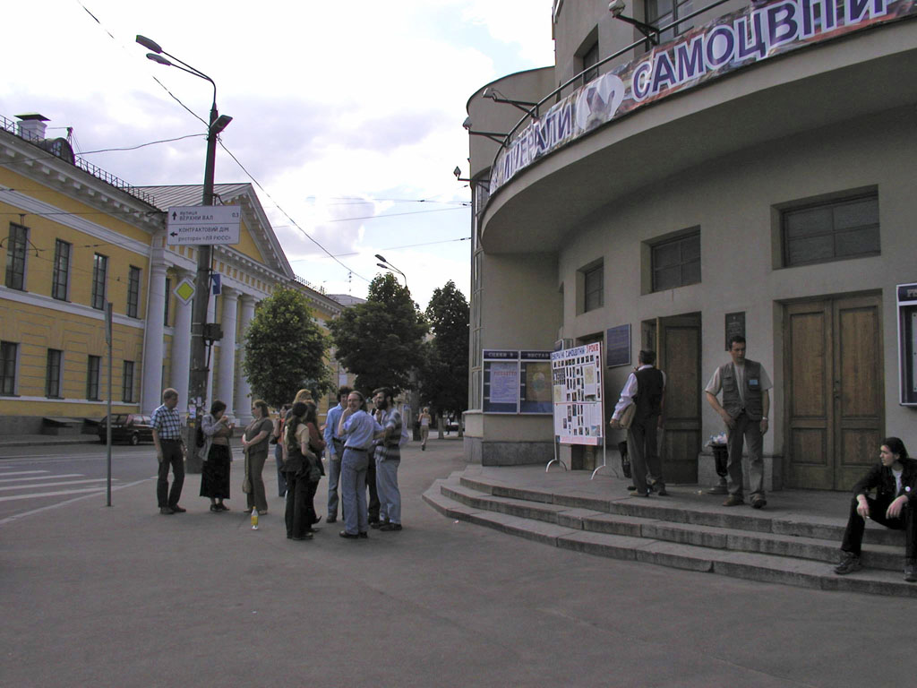 1) Перед началом заседания. У входа в Музыкальный театр. Слева направо на среднем плане: Ольга Опанасенко, Анна Ли, Александр Лайк, Константин Якименко, Татьяна Кохановская (со спины), Кайл Иторр. На дальнем плане: Владимир Пузий, Андрей Левицкий, Ираклий Вахтангишвили