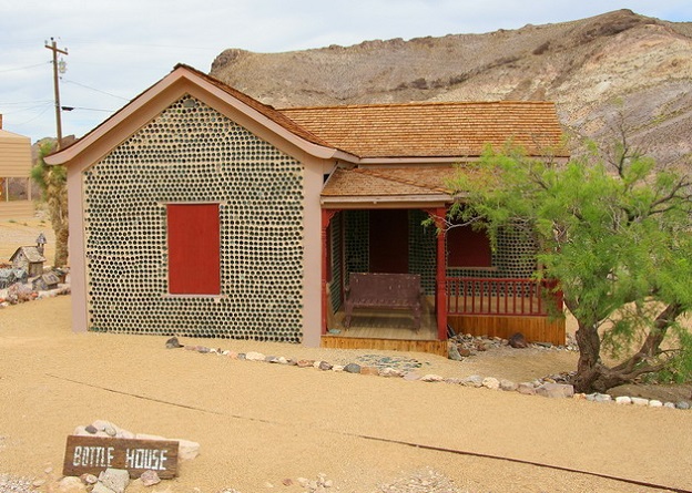 Пока дамы осматривали окрестности Фрэнк и я пошли к бутылочному дому. Его стены были построены во времена расцвета Риолита из бутылок от виски из местного салуна. Горлышки бутылок были обращены внутрь здания, поэтому они не могли свистеть на ветру.