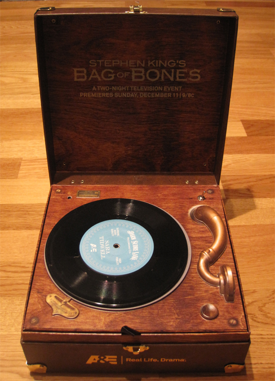 Не так давно в продажу поступил коллекционный бокс "Stephen King's Bag of Bones Phonograph Press Kit" выполненный в виде старинного фонографа, на котором воспроизводили музыку в начале двадцатого века.