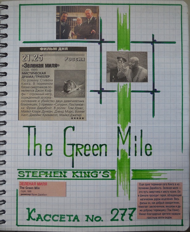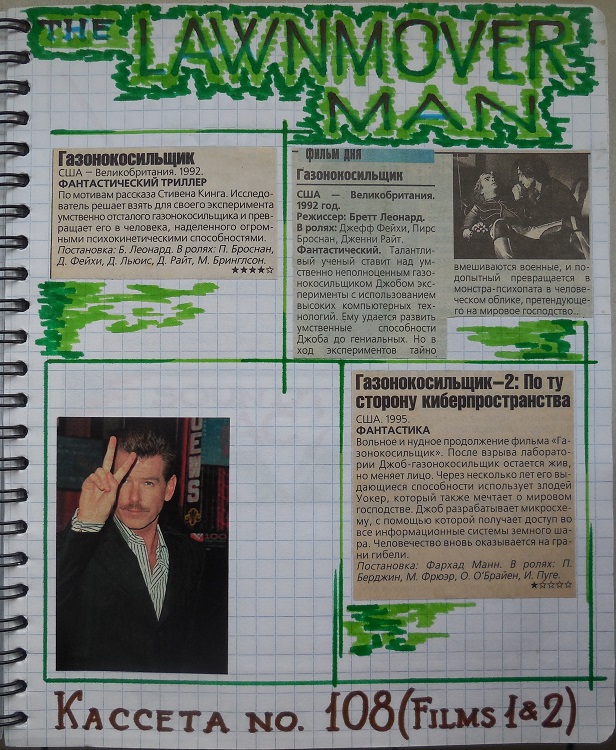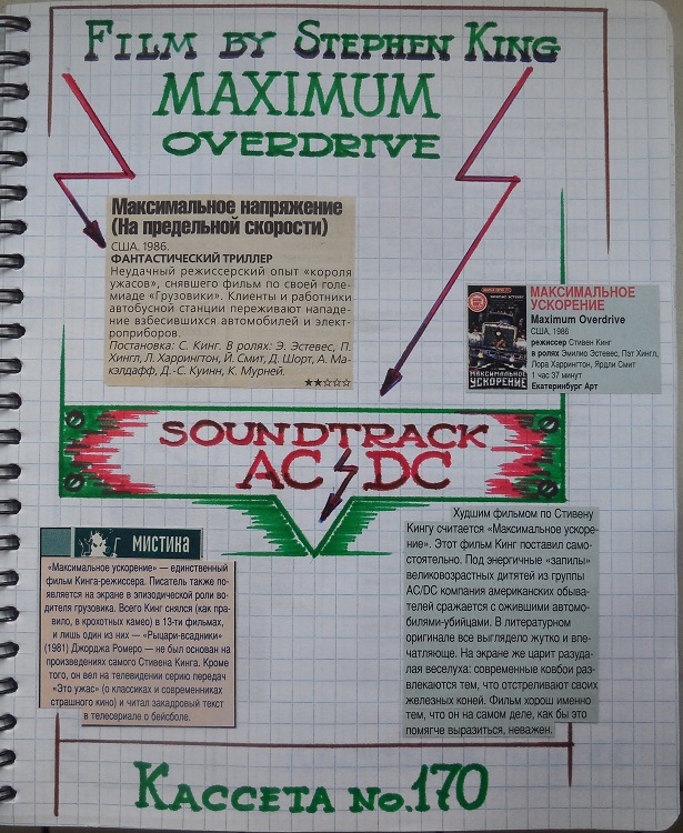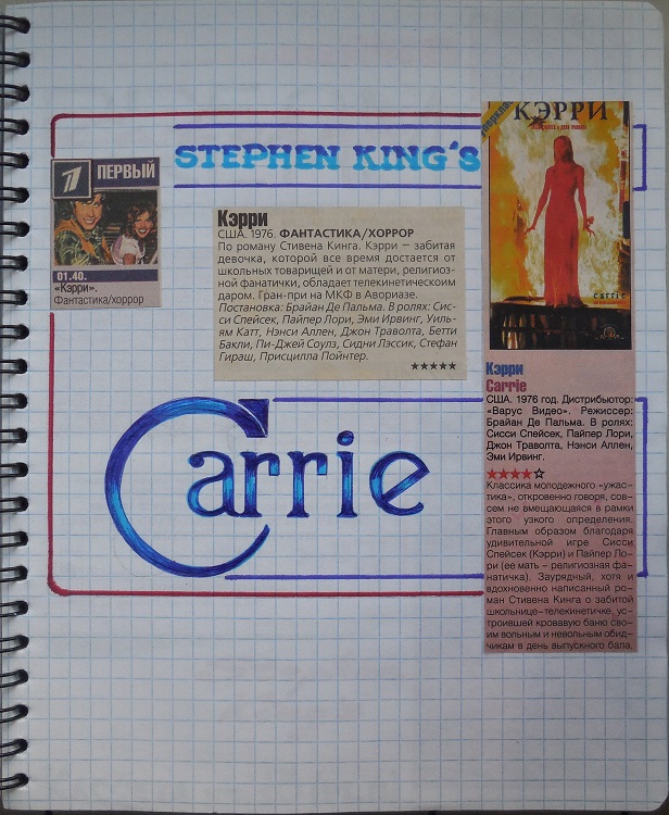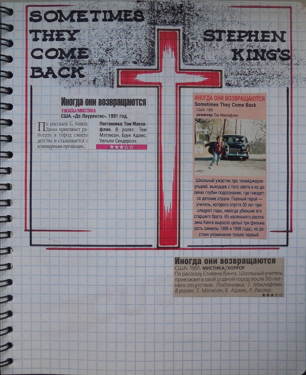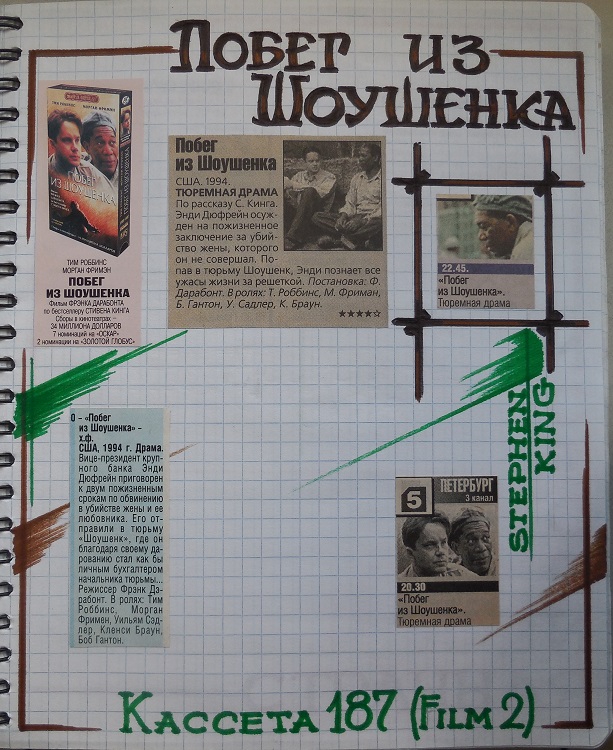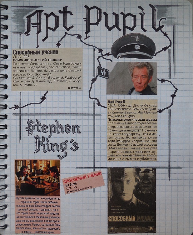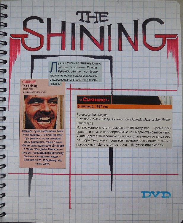 Видя мою увлеченность Мастером и экранизациями его работ, мой отец сделал для меня специальную тетрадь, под обложкой которой собрал кадры и описания просмотренных мной фильмов (фотографии нескольких страниц этой тетради я привел ниже).
