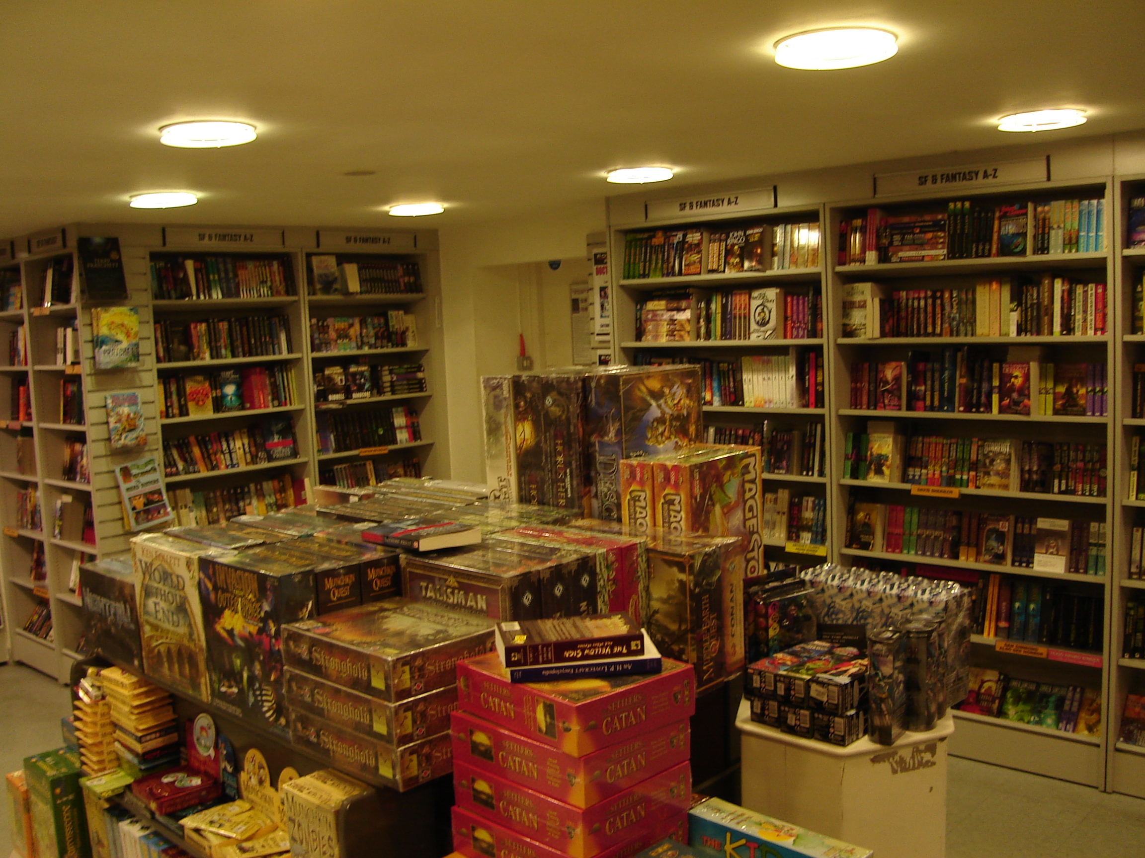 В магазине этом ихнем буржуйском -- рай для фантастолюба. Всякие там маечки, чашечки, магнитики и прочая утварь -- эт понятно. Это всё на верхнем этаже. На нижнем же -- комиксы и графические романы (два, братцы, два!!! зала), кино, музыка. И, разумеется, книги.