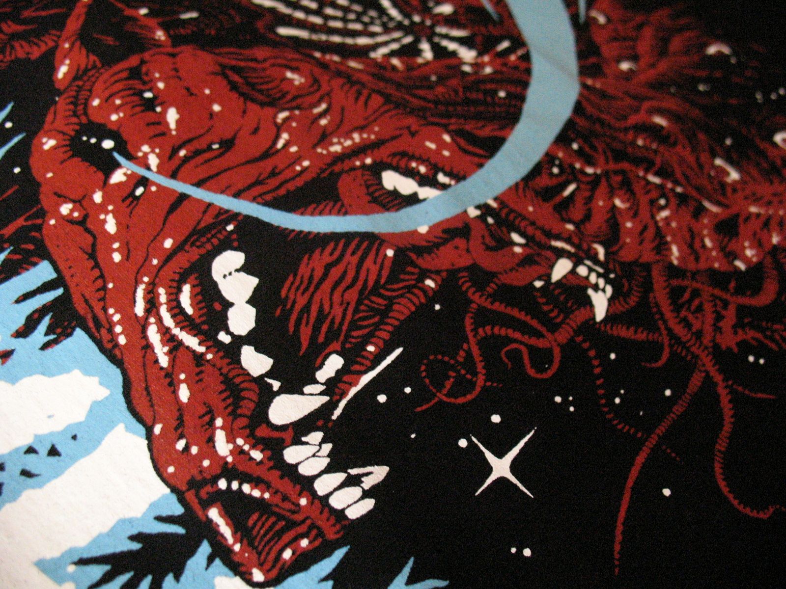 Но объясню, что к чему на самом рисунке. Луна, шарики и клоун — отсылка к роману "Оно", деревья, птицы и надгробья — к роману "Темная половина". На случай, если не читали: в "Половине" идет речь о воскресшем псевдониме, который буквально вылезает из могилы. Живучий оказался. Звали его Ричардом Старком. Нетрудно догадаться, что Кинг написал еще один роман о себе — у него был (и есть) псевдоним "Ричард Бахман", который умер от "рака псевдонима" в 1985 году, когда Кинга выкрыли. Но Бахман оставил после себя огромную кучу рукописей, и его вдова этим успешно пользуется. И да, клыки и воротник (не видите? прижмурьтесь) — отсылка к вампирскому роману "Участь Салема" ("Салимов удел", "Жребий", whatever).