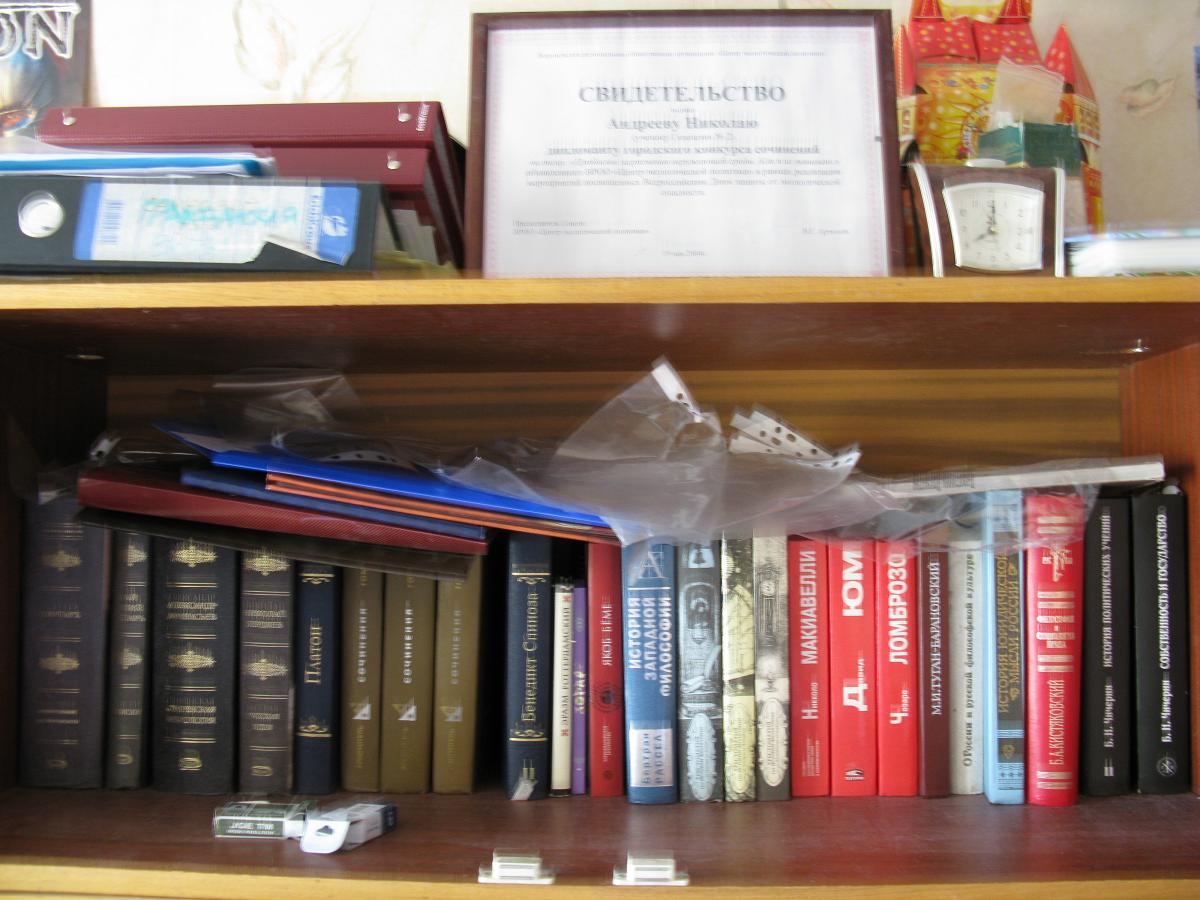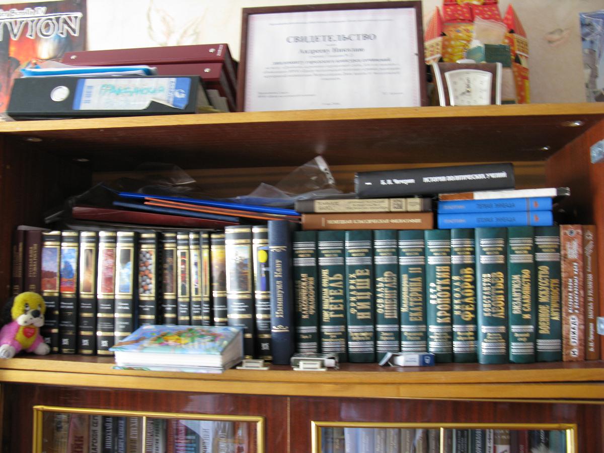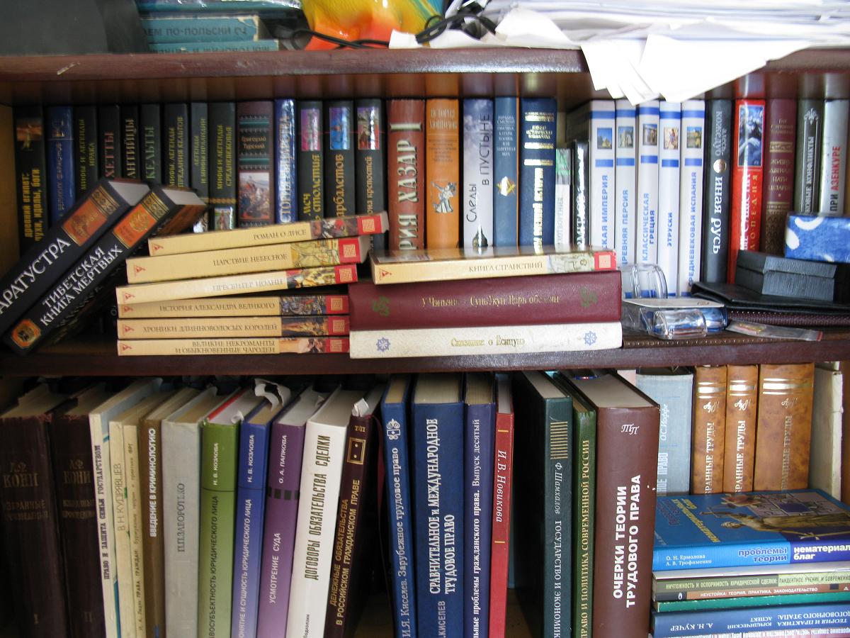 Тут же позади него появились книжные полки, всё удлинявшиеся и удлинявшиеся, будто бы стремясь достать до края мироздания.