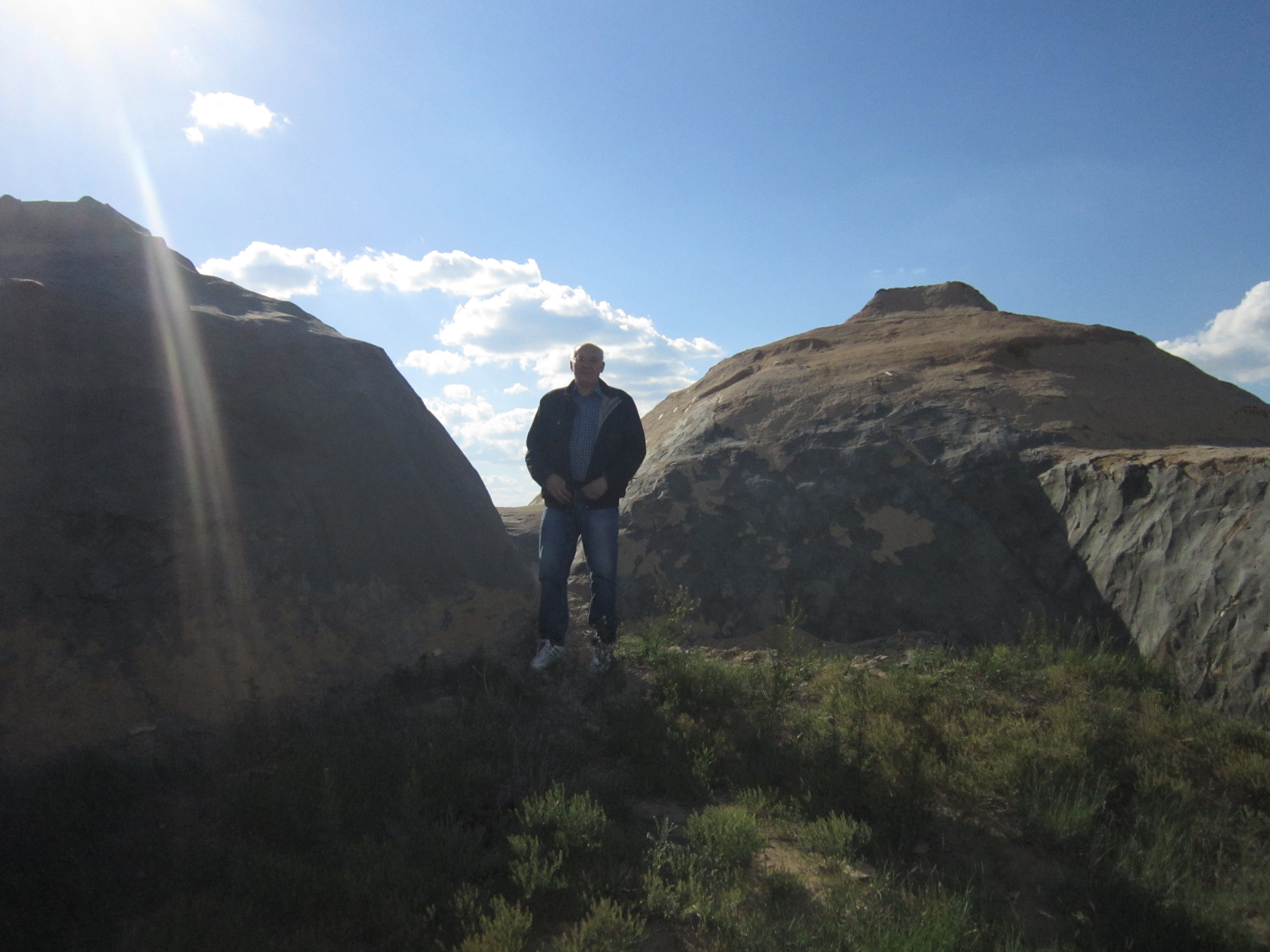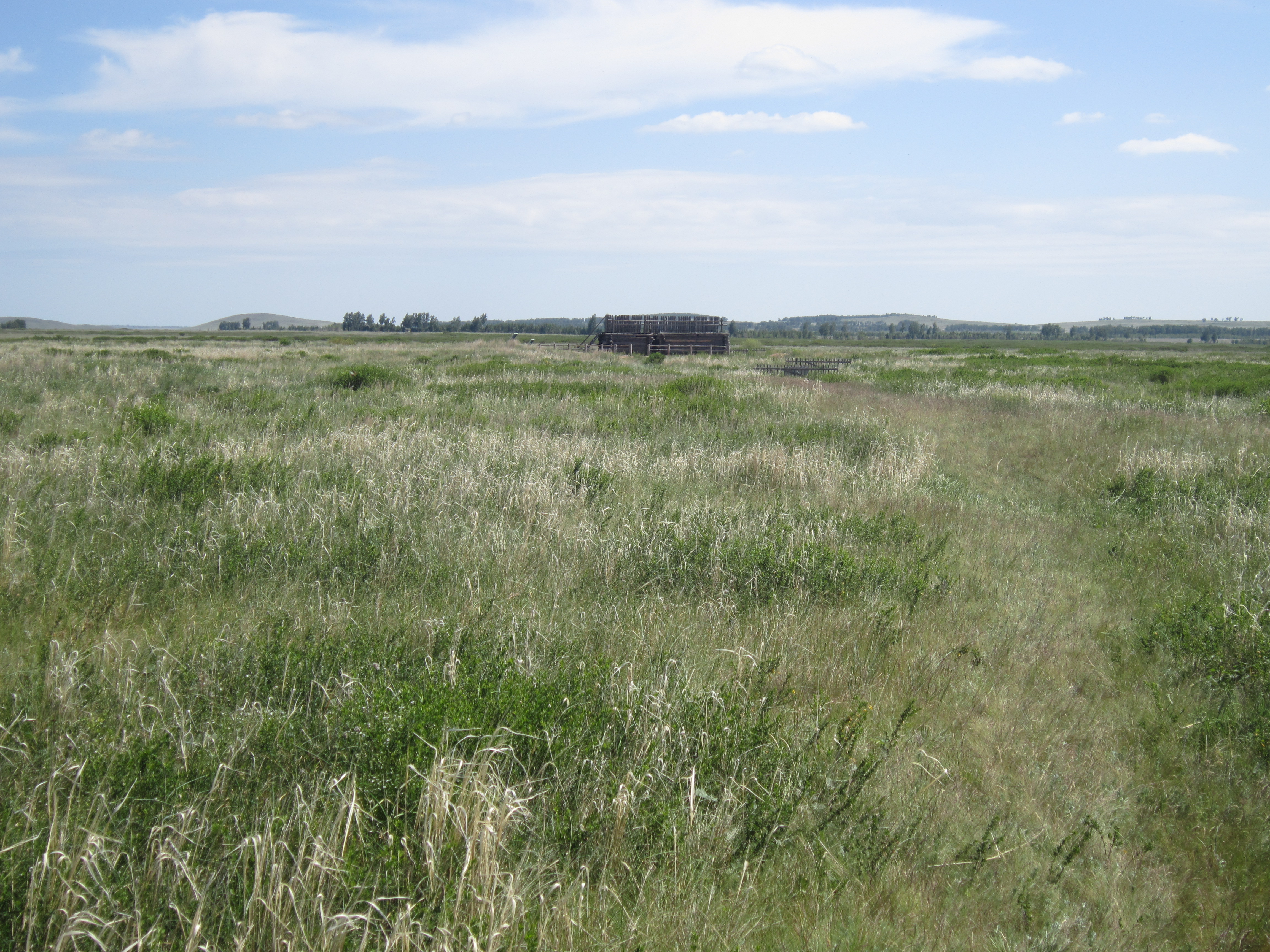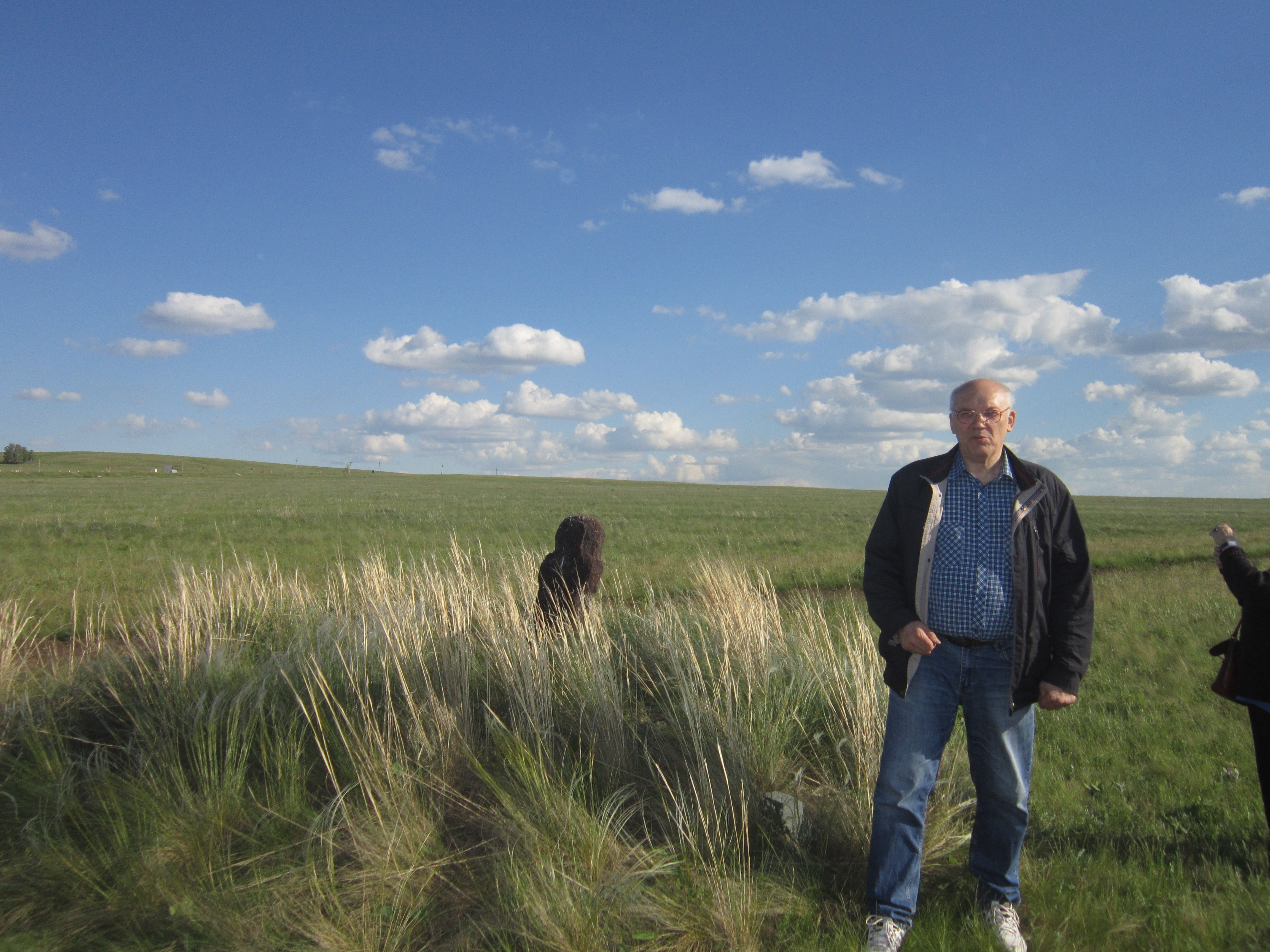 В 10. 15 уже выходим непосредственно на экскурсию на место раскопок Аркаима. Переходим речку и через березовую рощу входим в долину реки Бол. Караганка, которая является кратером прото-вулкана "Огненный". В двух километрах видна восстановленная часть крепостной стены города. Аркаим был найден двумя студентами во время археологического исследования местности перед затоплением водохранилищем. Жилой лагерь "Аркаим" находится у дамбы, которую осталось досыпать буквально 20 метров. В связи с важностью октрытия археологи навсегда остановили строительство.