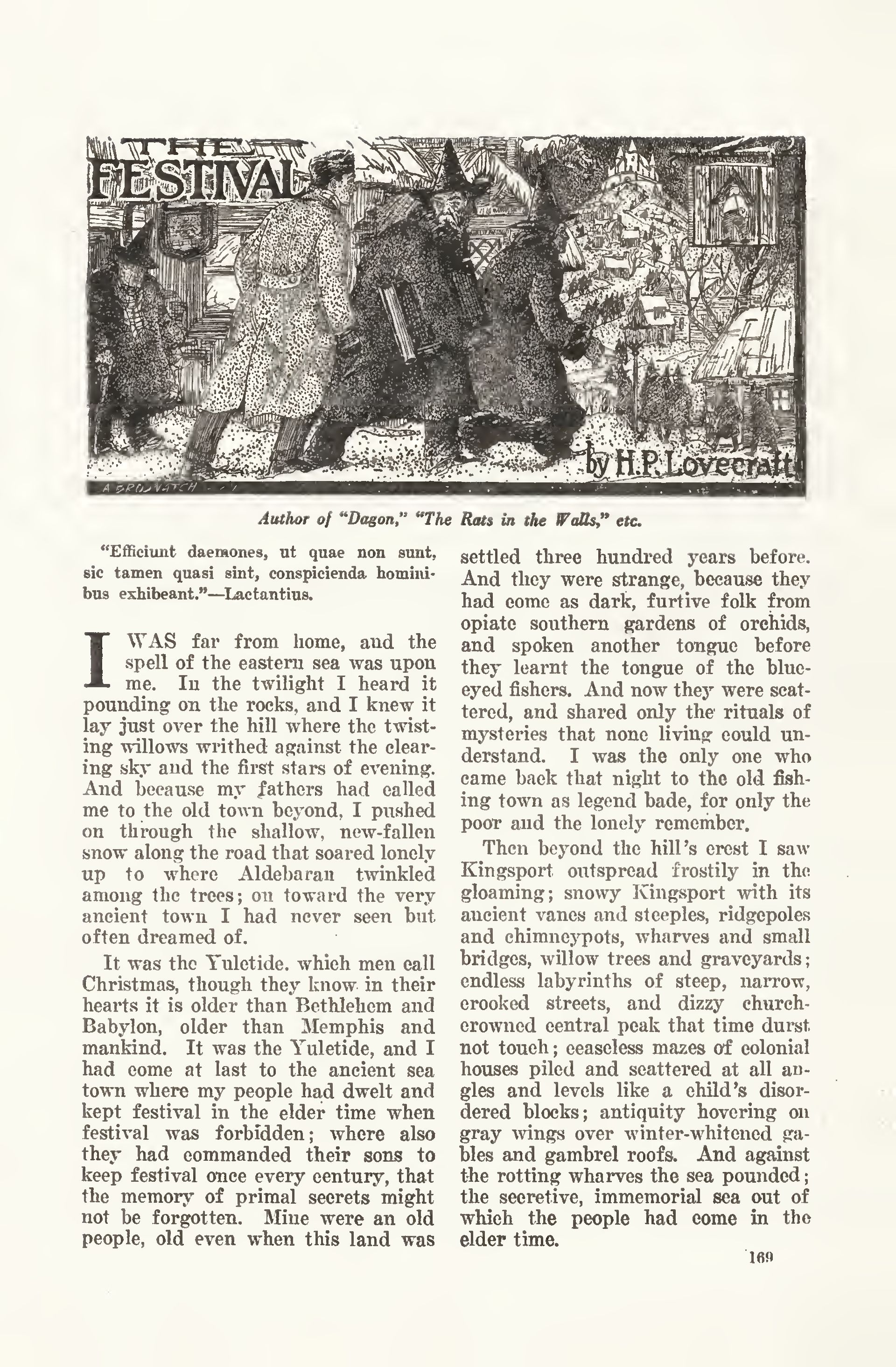 За свой относительно короткий жизненный путь (1890-1937) Г. Ф. Лавкрафт, тем не менее, успел сделать довольно многое: увлечься арабской тематикой и греко-римской мифологией, прикипев нутром к Природе, ощущая и осознавая себя ее частью; направить свои изыскания в разные области науки (начиная с химии и заканчивая географией и астрономией); наконец, стать успешным литератором и редактором. Как известно широкой публике и любителям творчества Мастера, наиболее успешно его творчество проявилось в многочисленных тогда бульварных журналах, где появлялись работы Лавкрафта (по-большей части, под нажимом круга его друзей, буквально заставлявших его посылать свои произведения в редакции). Многие из произведений были отвергнуты или приняты некоторое время спустя, загоняя Лавкрафта в очередной омут самобичевания и неудовлетворенности собой, но надо признать, что данные журналы (главным из которых, конечно, стал «Weird Tales») стали спасательным кругом для совсем небогатого писателя.