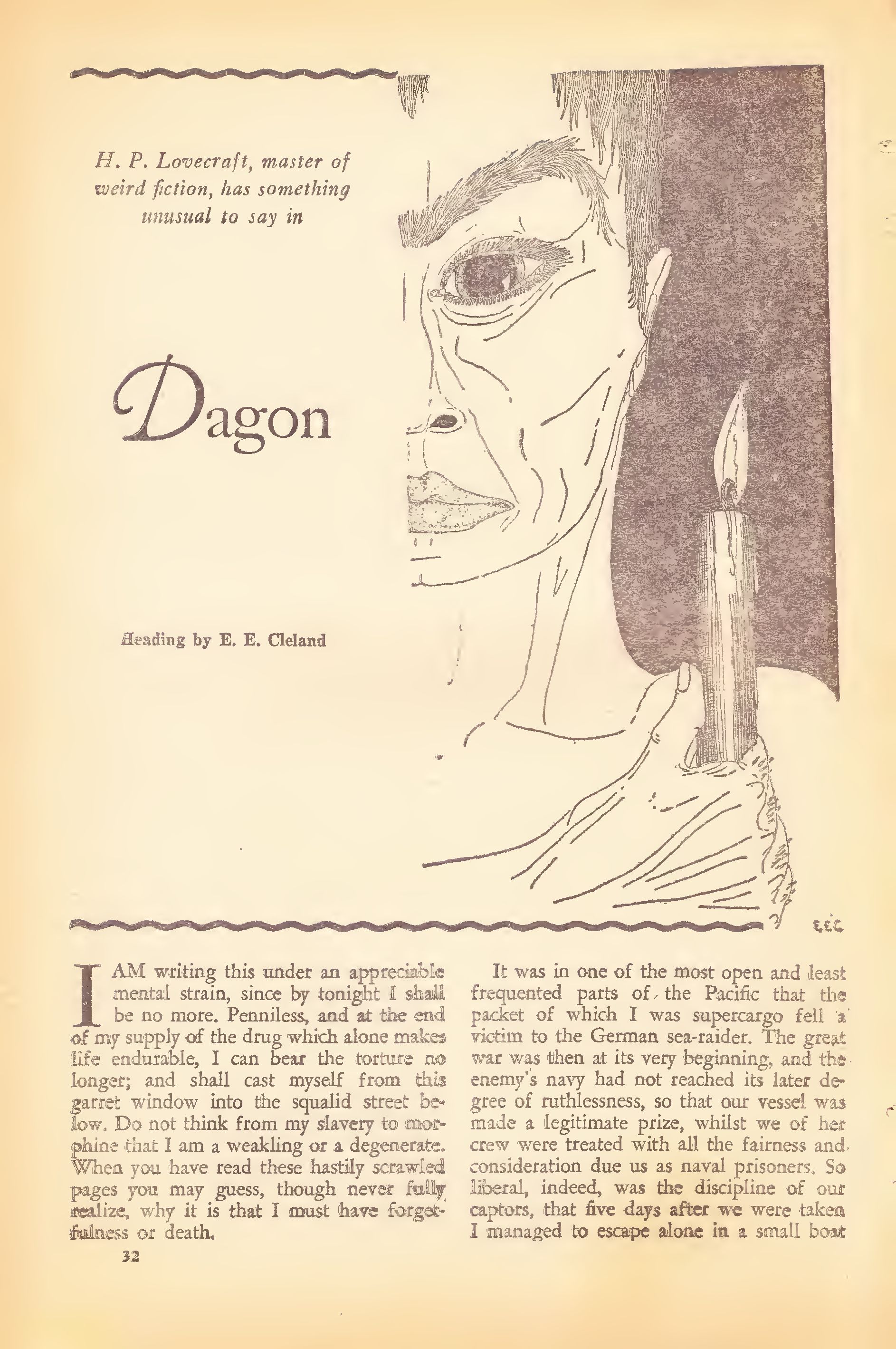 «Утренняя газета шокировала меня новостью – умер Говард Филлипс Лавкрафт. Выдающийся современный писатель жутких историй ушел из жизни в возрасте сорока шести лет. Не будет преувеличением сказать, что я, наряду со всеми читателями WT, потерял настоящего друга, и его место вряд ли кто-то займет. Его монструозный Некрономикон, ужасный Ктулху, Азатот и Старшие боги явили собой совершенно новые грани жутких историй. Каждое из произведений Лавкрафта было лучшим в выпусках. Прочитав в 11 лет «Серебряный ключ», я не пропустил более ни одного. Одним из моих стремлений – несбывшихся, к сожалению – было встретиться и поговорить с ним. Но теперь из-под пера автора больше ничего не выйдет. Это потеря для всех нас».