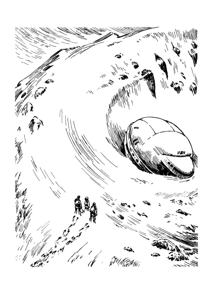 — Дик, Олег и Марьяна спускались в котловину, к кораблю, он рос, был материален и громаден, но оставался легендой, чашей Грааля, и никто из них не удивился бы, если бы при прикосновении он рассыпался в прах. Они возвращались к дому своих отцов, который пугал тем, что перешел в эту холодную котловину из снов и легенд, рассказанных при тусклом светильнике в хижине, когда за щелью окна, затянутого рыбьей кожей, рычит снежная метель.