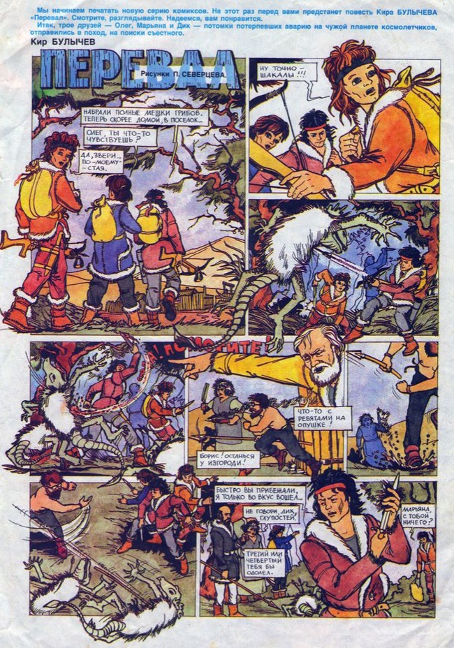 начало комикса Петра Северцова в журнале "Пионер" 1991 года