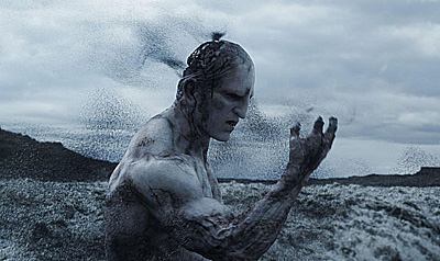 Водопад. Здоровенный мужик выпивает какую-то бурду и распадается буквально на ДНК, которые попадают в воду. Создатели картины намекают, что именно этот разложенец и стал прародителем жизни на Земле.
