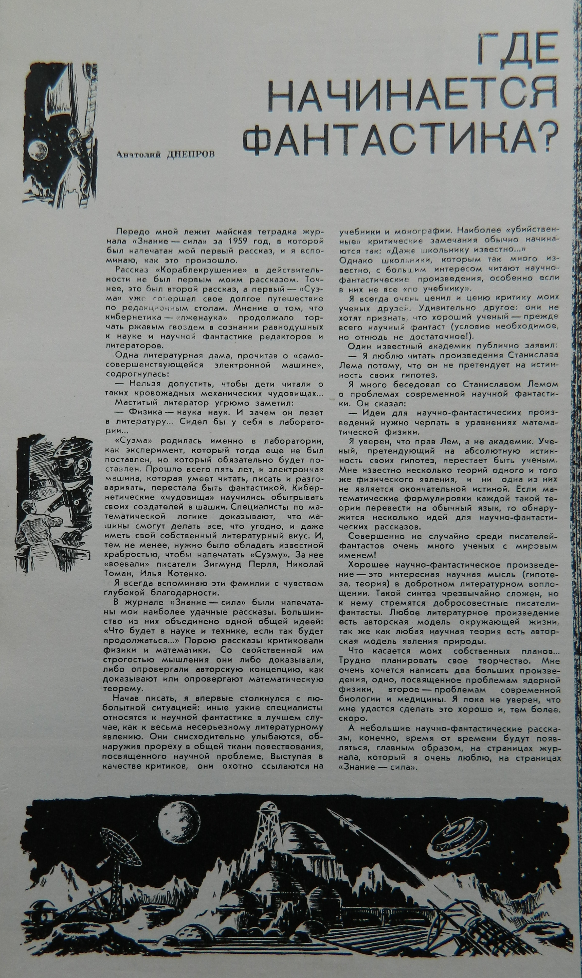 Анатолий Днепров. Где начинается фантастика? (статья, иллюстрации) // Знание-сила № 11 ноябрь 1963, стр. 4
