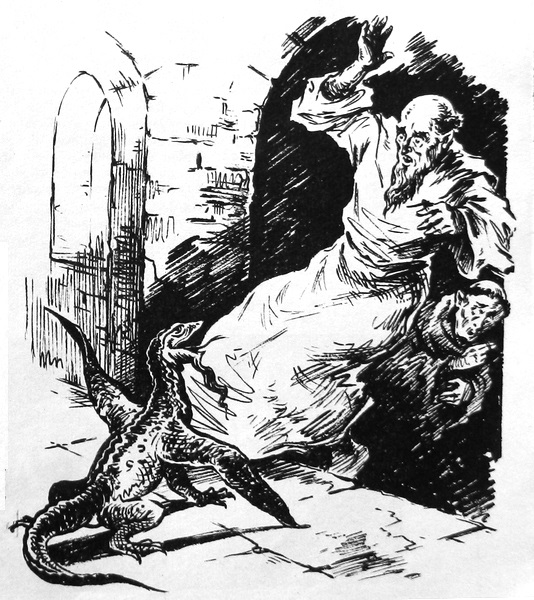 Однажды отрезав кусок собственной бороды, он привязал его к морде ящерицы. А когда выпустил ее из ящика, то даже сам содрогнулся – до того безобразен был вид крылатого, покрытого бородавками змея с седой бородой. Художник поскорее снова загнал чудовище в ящик и захлопнул крышку...