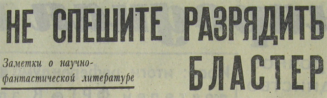 «Он пугает, а мне не страшно», — эту незлую усмешку М. Горького над некоторыми рассказами Л. Андреева можно отнести и к ряду научно-фантастических повестей и рассказов последних лет. И дело даже не в том, «страшно» или нет читателю при чтении таких вещей, а в том, содержится ли в них мысль» свежая и смелая, способная разрушать существующие стереотипы мышления, а не закреплять их, что вольно или невольно происходят, когда читателю вновь и вновь предлагают открытое, известное. Так что не отражается ли в «воинственности» некоторых героев несмелость, даже вялость мысли авторов, затрудняющихся увлечь нас дальше рубежей, уже осиленных наукой?