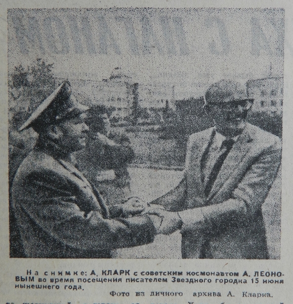 На снимке: А. КЛАРК с советским космонавтом А. ЛЕОНОВЫМ во время посещения писателем Звездного городка 15 июня нынешнего года.