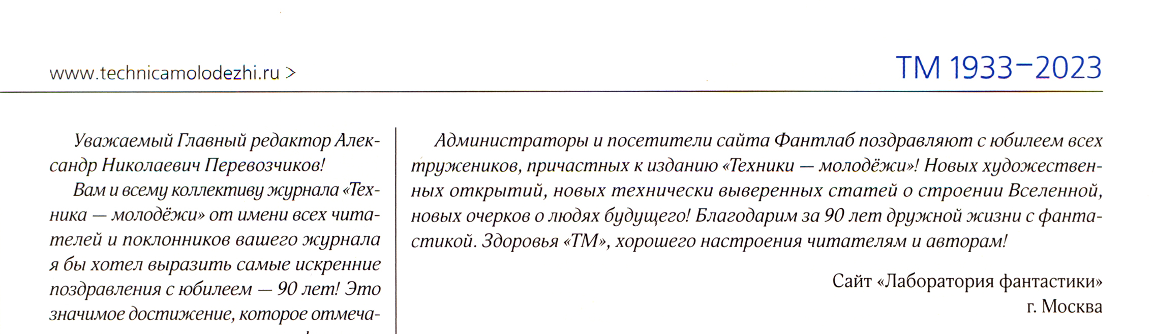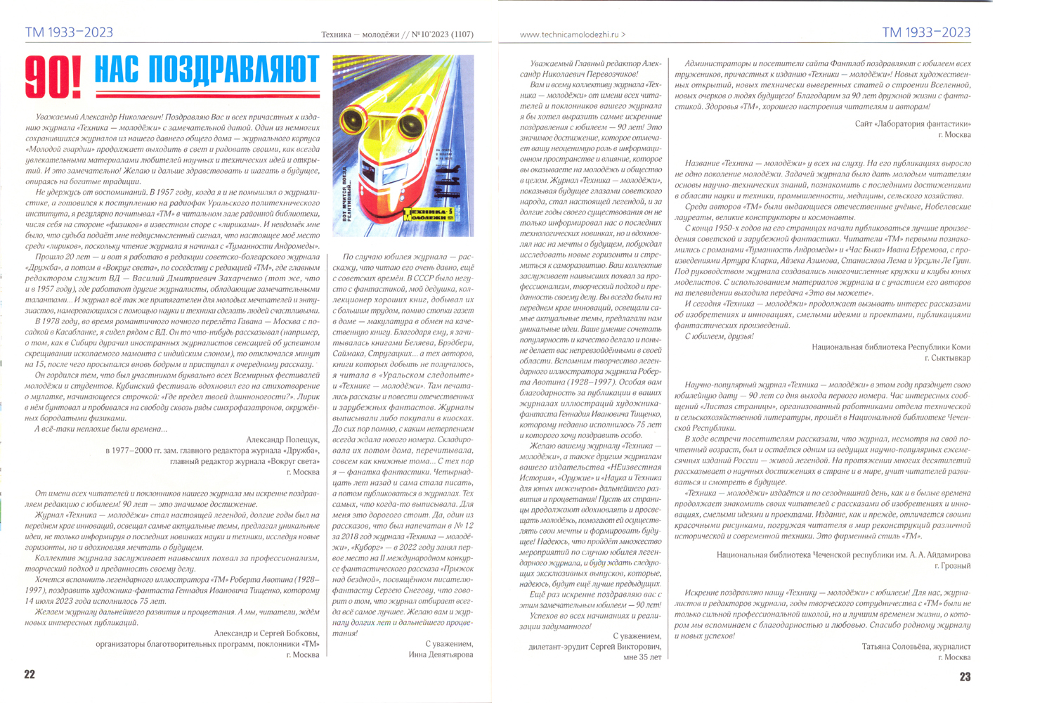 - Сайт «Лаборатория фантастики». [Поздравление с 90-летием журнала ТМ], стр. 22