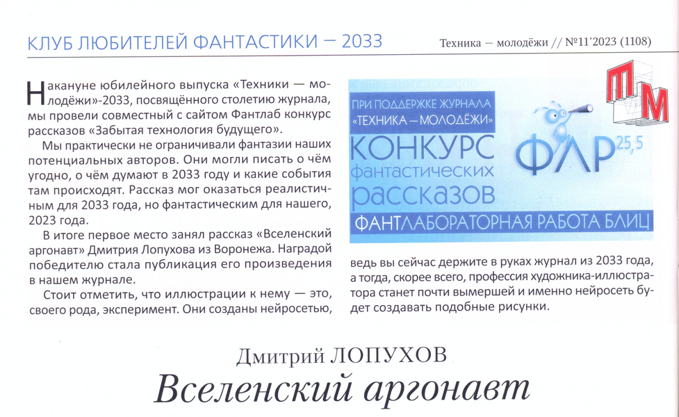 - Дмитрий Лопухов. Вселенский аргонавт (рассказ, иллюстрации нейросети), стр. 58-61