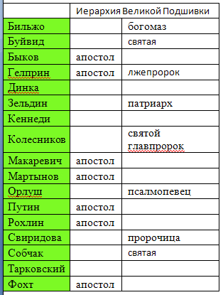 Посмотрите, пожалуйста, сводный список фамилий со «званиями», которые ниспослал им автор рассказа.