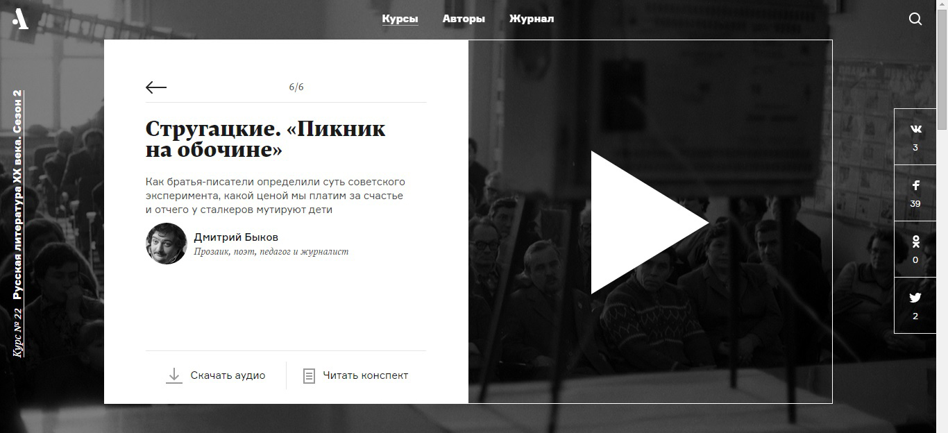 Собственно, сабж. Дмитрий Львович вещает о "Пикнике на обочине" и о контексте.