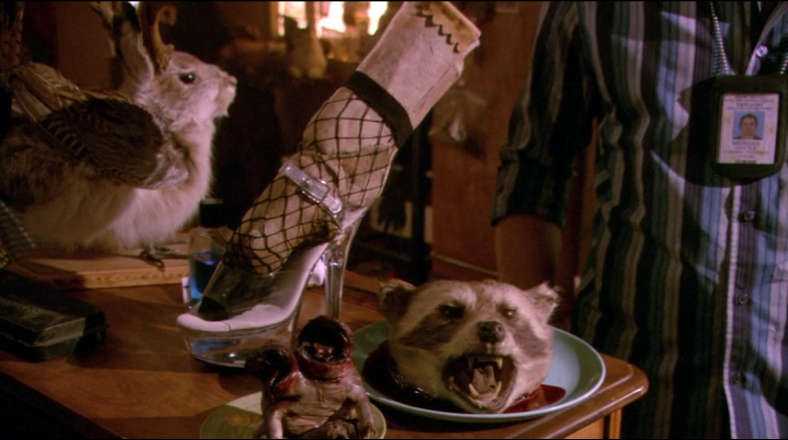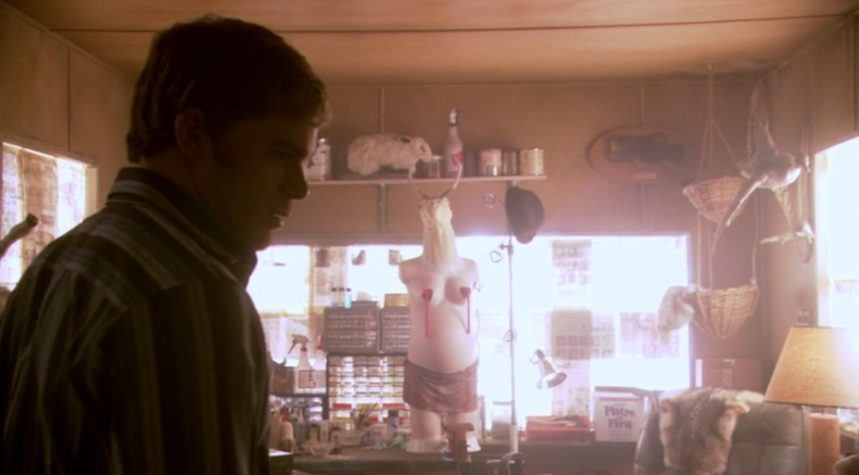 3. Нил Перри — подражатель Ледяного убийцы. В каком-то смысле он во всем противоположность Декстера и Брайна. Во-первых, y него нет настоящей страсти, которая могла бы стать основой для творчества. Он подражатель, у него нет своей личности. Как следствие у него нет внутреннего мотива творить. Его мотивирует только слава гениального художника, он хочет быть кем-то незаурядным, это сквозит в натужной “оригинальности” его искусства изготовления чучел. Вся его мотивация вовне. Без зрителей, замерших в восхищении, он не видит в этом смысла. Даже так, ему достаточно лишь зрителей, без всякого искусства. (В то время как Декстер и Брайн наоборот скрывают себя от публики, от зрителей.) Достаточно что бы его принимали за Ледяного убийцу, и это будет питать его энергией вместо творчества. Маньяка он старательно играет снаружи, как он его себе представляет, хотя ни Декстер, ни Брайн так не выглядят и так себя не ведут. Беспорядок и хаос трейлера в котором он живет, отражает беспорядок и хаос внутри него. И это также противоположно порядку и собранности в жизни Брайна и Декстера.