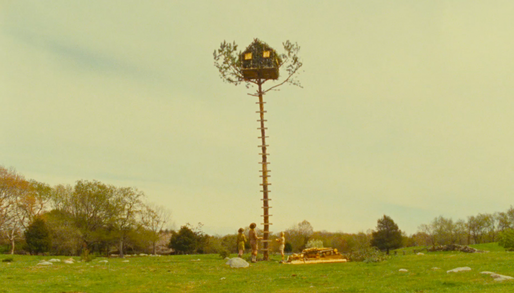 Обо всем по порядку. Во-первых, основные два противостоящих полюса в фильме — это взрослые и дети. Мир и тех и других наполнен проблемами. Главный герой Сэм Шикаски, сирота, живет будто не то в армии, не то в тюрьме, поведение направленное на выживание в столь жесткой среде со стороны кажется неуравновешенным, особенно взрослым. Чудесным детством его жизнь и не назовешь. Но в противовес взрослым, жизнь которых тоже не сахар, Сэм еще не утратил своей чудесной энергии, способности мечтать, и что важнее осуществлять мечту. Он как будто живет в двух мирах — один суровый окружающий мир, второй красочный мир возможностей. Задуманный поход Сэма, в который он взял Сьюзи Бишоп, это поход в свой мир, желание туда уйти и у него это в конце концов получилось. Сьюзи он выбрал тоже не случайно. Ведь Сьюзи тоже живет в двух мирах, ее второй мир, это мир ее книг о волшебных королевствах, главные героини которых девочки. Сьюзи пошла за Сэмом искать такое королевство. И меня просто поразила сцена, где она рассказывает, что она взяла с собой поход — если бы я в двенадцать лет могла так четко осознавать что мне на самом деле нравится!