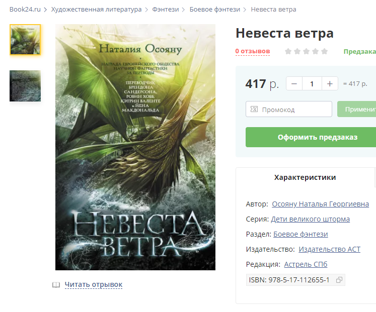 Не знаю, насколько Фантлабу интересно то, о чем я пишу, когда не перевожу чужие книги. Но на тот случай, если здесь ещё остались мои читатели, делюсь ссылкой на предзаказ: https://book24.ru/product/nevesta-vetra-5...