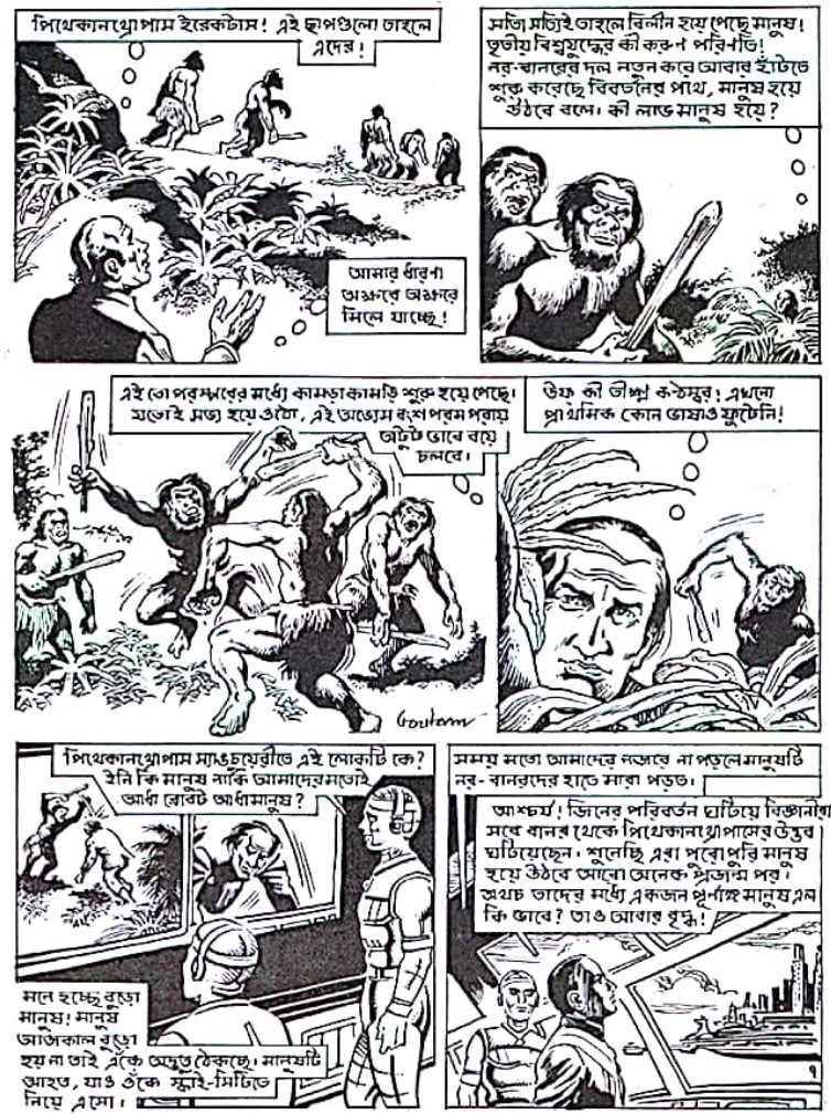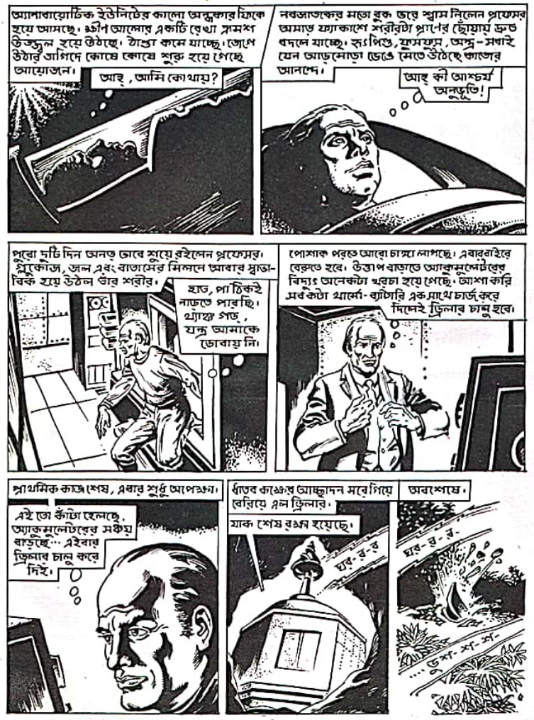 Почти случайно обнаружил комикс на бенгальском языке по мотивам рассказа Владимира Савченко «Пробуждение профессора Берна». Рассказ издавался в переводе на бенгальский язык в 1964 году в составе антологии «গ্রহান্তরের আগন্তুক» («Гость из космоса»). Видимо, благодаря этому изданию и появился комикс. В каком году создан комикс, я установить не сумел.