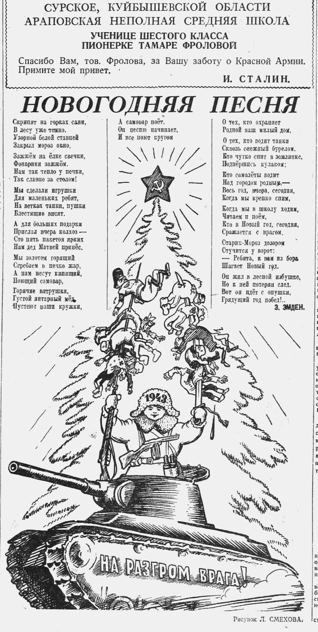 В 1927-28 гг. в СССР началась яростная антирелигиозная пропаганда, борьба с религиозными праздниками и их атрибутами, под горячую руку попала и рождественская ёлка, элемент религиозных предрассудков и буржуазный пережиток. На первой полосе 113-го, новогоднего, номера "Пионерской правды" за 1928 год, вышедшего с огромным заголовком "Пионеры не празднуют рождества", размещена карикатура, на которой хитрый "поп" ловит неразумного ребёнка на нарядную ёлочку, словно на крючок, об этом сообщает и подпись: "Слежу за рыбкой жадно я./ Вот ёлочка нарядная,/ Заместо червячка./ Ещё даю конфеты я./Авось, приманкой этою/ Поймаю простачка". Чуть ниже — обличительное стихотворение Евгения Крекшина под названием "Против ёлки", мол, "пахнущих ладаном ёлок не надо нам".
